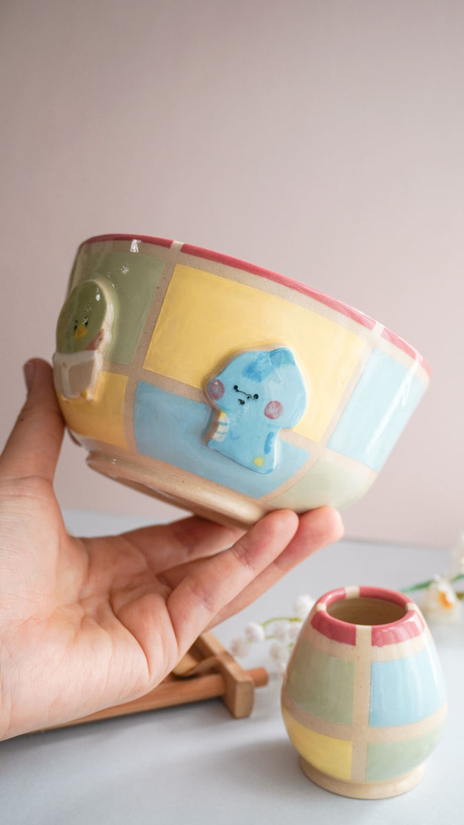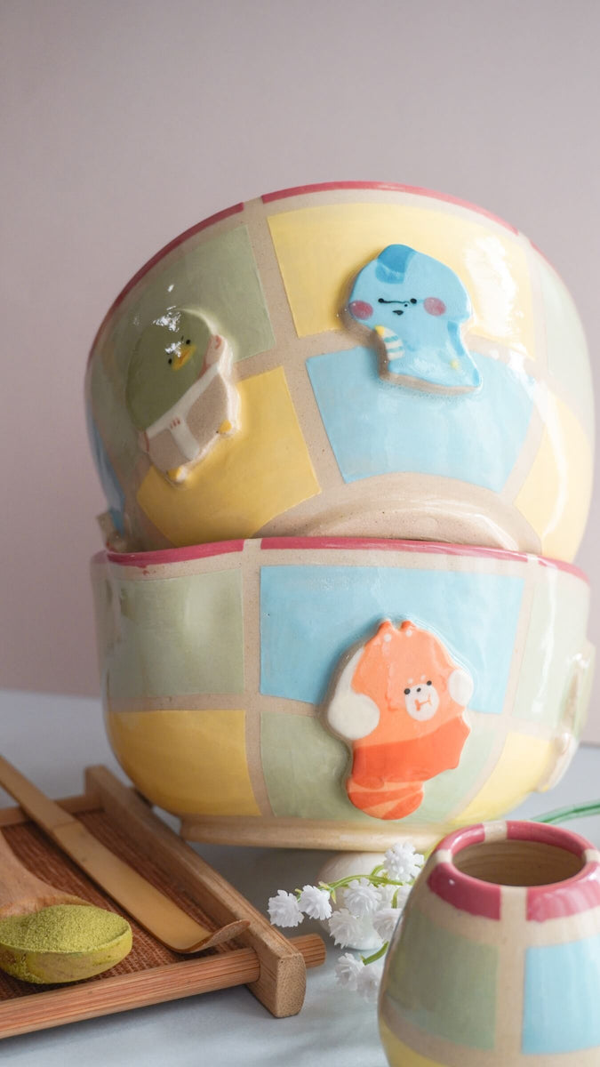 The whole Kamoverse in one bowl—brew matcha with friends across worlds 🌙🍵🦆🦊🌟INCLUDES 1 MATCHA BOWL AND 1 CHASEN, comes as a SET